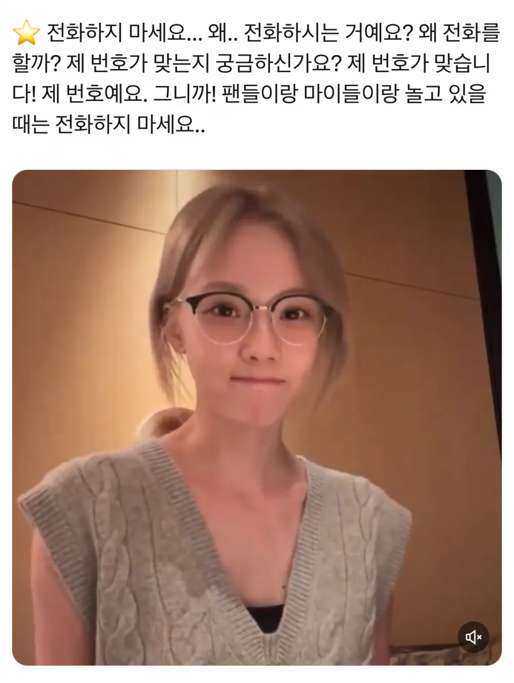 "Будь ласка, не дзвоніть... Навіщо ви дзвоните? Чому ви дзвоните? Ви цікаві, чи це мій номер? Так, це мій номер! Це мій. Тому! Коли я спілкуюся з фанами та MYs, будь ласка, не дзвоніть..." виражаючи своє розчарування та прохання припинити переривання під час взаємодії з фанами.