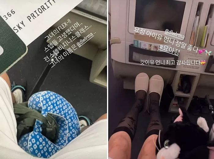 Один зі співробітників написав: "Її вчинок - забезпечити бізнес-клас для всіх співробітників як винагороду за їхню важку працю. Її ім'я IU", поділившись фотографією себе в бізнес-класі.