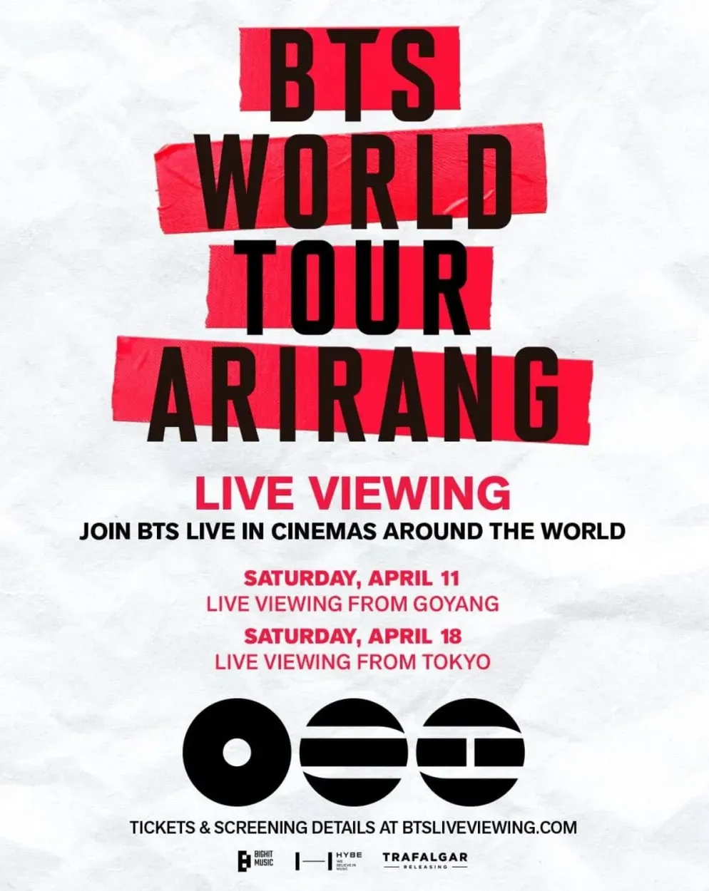 BTS офіційно оголосили про майбутній [BTS WORLD TOUR ‘ARIRANG’], а також розкрили плани щодо глобальних кінопоказів у форматі live viewing, онлайн-стримінгу та відкладених переглядів.