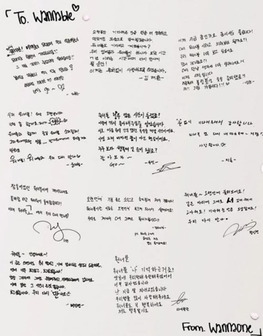 «Пам’ятаєте обіцянку, що коли ви зберетеся, Wanna One теж збереться? Ми запізнилися, але прийшли, щоб її виконати. Оскільки весняний вітер уже пройшов, сподіваюся, ми скоро зустрінемося».